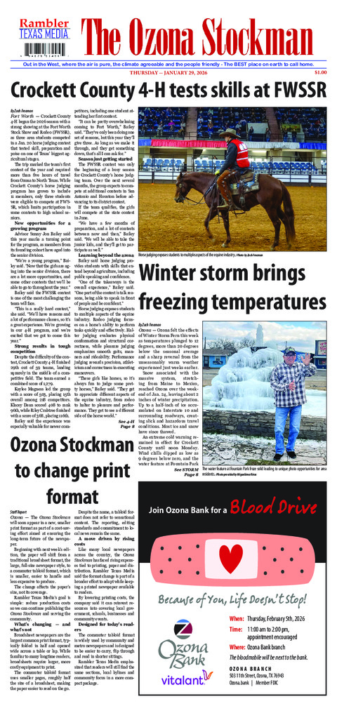 Ozona—Ozona felt the effects of Winter Storm Fern this week as temperatures plunged to 12...