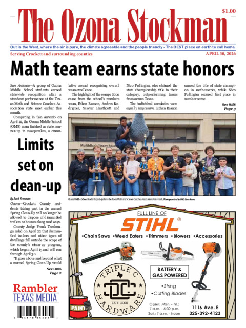 Ozona—A piece of Crockett County history has been brought back to life and is now on display at...